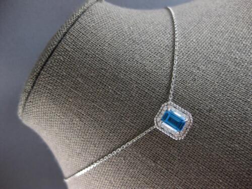 1.34CT DIAMOND & AAA BLUE TOPAZ 14KT WHITE GOLD 3D EMERALD CUT & ROUND PENDANT