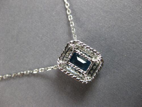 14KT WHITE GOLD FLOATING PENDANT. 3D SQUARE OCTAGON FILIGREE CLASSIC DESIGN. ROUND DIAMONDS ARE F/G COLOR, VSSI CLARITY .12 CARATS. AAA EXTRA FACETED EMERALD CUT BLUE TOPAZ IS 1.22 CARATS. MEASURES 11mm X 9mm. COMES ON A 14KT GOLD DIAMOND CUT 16-18" INCH CHAIN. WRITTEN APPRAISAL AVAILABLE. COMES IN A PRESENTABLE GIFT BOX.