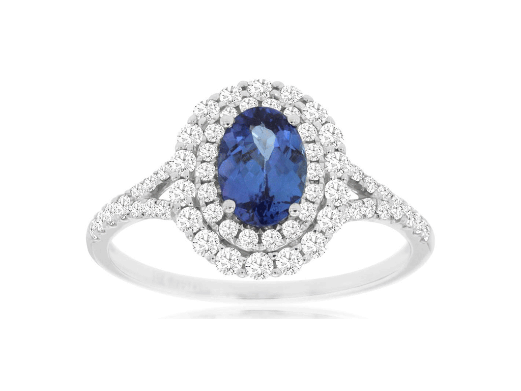 1.34CT DIAMOND & AAA TANZANITE 14K WHITE GOLD OVAL & ROUND DOUBLE HALO LOVE RING