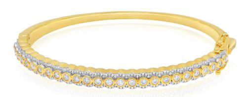 1.35CT DIAMOND 14KT YELLOW GOLD ROUND SEMI ETERNITY BEZEL CUFF BANGLE BRACELET