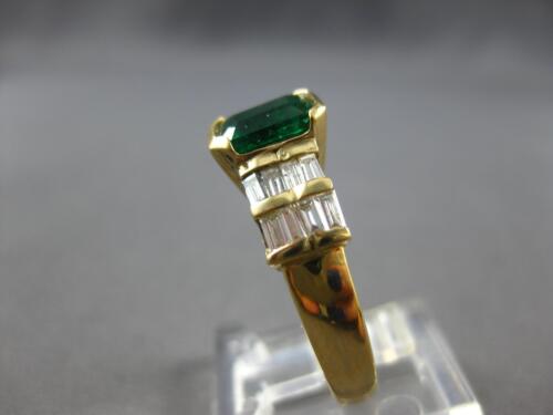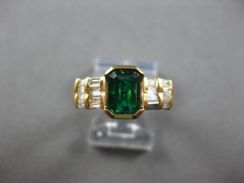 18KT YELLOW GOLD ENGAGEMENT RING. 3D CLASSIC SEMI BEZEL DESIGN. BAGUETTE DIAMONDS ARE F/G COLOR, VSSI CLARITY .45 CARATS. AAA SQUARE EMERALD IS .90 CARATS. MEASURES 8.5mm X 4mm. RING SIZE 7. CAN BE SIZED BY OUR MASTER JEWELER UPON REQUEST. WRITTEN APPRAISAL AVAILABLE. COMES IN A PRESENTABLE GIFT BOX.