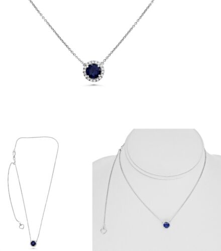 1.36CT DIAMOND & AAA SAPPHIRE 18KT WHITE GOLD ROUND SOLITAIRE HALO LOVE NECKLACE