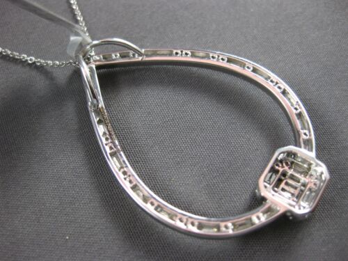 1.37CT DIAMOND 14KT WHITE GOLD ROUND & BAGUETTE OPEN TEAR DROP FLOATING PENDANT