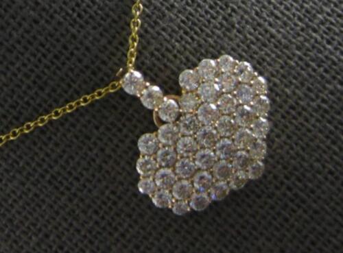 14KT YELLOW GOLD LOVE FLOATING PENDANT. 3D HEART SHAPE INVISIBLE DESIGN. DIAMONDS ARE F/G COLOR, VSSI CLARITY 1.37 CARATS. MEASURES 18mm X 16mm. COMES ON A 14KT GOLD DIAMOND CUT 16" INCH CHAIN. WRITTEN APPRAISAL AVAILABLE. COMES IN A PRESENTABLE GIFT BOX.