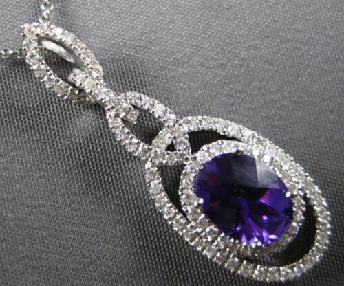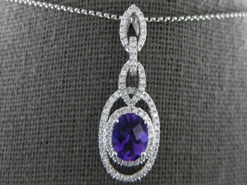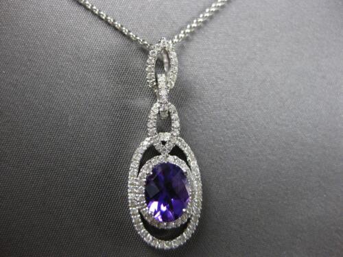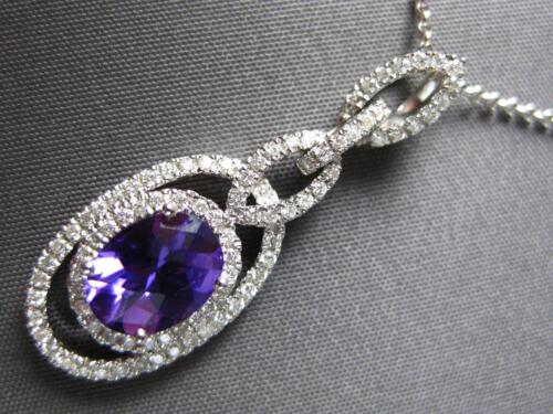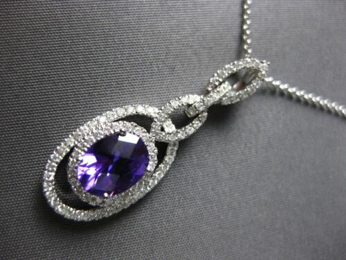 14KT WHITE GOLD LOVE NECKLACE. 3D DOUBLE HALO LOVE KNOT TEAR DROP INFINITY DESIGN. ROUND DIAMONDS ARE F/G COLOR, VSSI CLARITY .33 CARATS. AAA EXTRA FACETED OVAL AMETHYST IS 1.04 CARATS. MEASURES 30mm X 10.5mm. 16" INCHES LONG. WRITTEN APPRAISAL AVAILABLE. COMES IN A PRESENTABLE GIFT BOX.