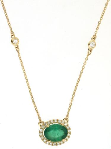 1.37CT DIAMOND & AAA EMERALD 14K YELLOW GOLD OVAL HALO BY THE YARD LOVE NECKLACE
