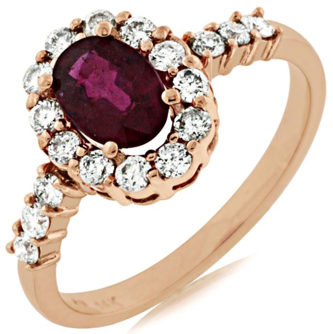 1.37CT DIAMOND & AAA RUBY 14KT ROSE GOLD 3D OVAL & ROUND HALO ENGAGEMENT RING