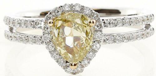 1.37CT WHITE & FANCY YELLOW DIAMOND 18KT 2 TONE GOLD PEAR SHAPE ENGAGEMENT RING