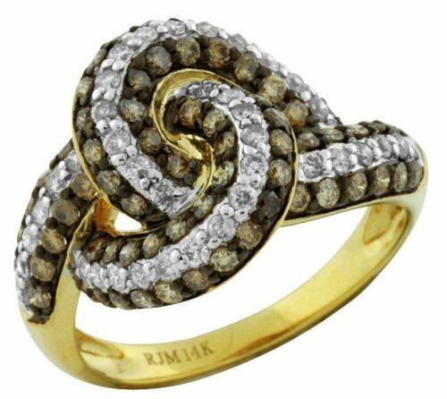 14KT YELLOW GOLD FUN RING. 3D MULTI ROW LOVE KNOT DESIGN. WHITE DIAMONDS ARE F/G COLOR, VSSI CLARITY .44 CARATS. CHOCOLATE FANCY DIAMONDS ARE .95 CARATS. RING SIZE 7. CAN BE SIZED BY OUR MASTER JEWELER UPON REQUEST. WRITTEN APPRAISAL AVAILABLE. COMES IN A PRESENTABLE GIFT BOX.