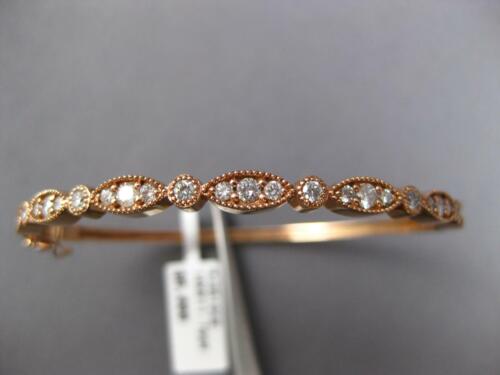 14KT ROSE GOLD LOVE BANGLE BRACELET. 3D ROUND AND MARQUISE SHAPE FILIGREE MILGRAIN SEMI ETERNITY DESIGN. ROUND DIAMONDS ARE F/G COLOR, VSSI CLARITY 1.30 CARATS. MEASURES 4.2mm X 2.5mm. FITS UP TO 6.5-7" INCH WRIST. WRITTEN APPRAISAL AVAILABLE. COMES IN A PRESENTABLE GIFT BOX.