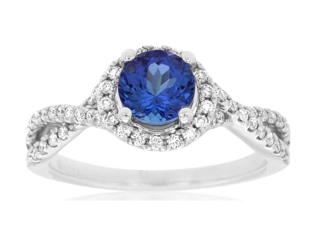 1.3CT DIAMOND & AAA TANZANITE 14KT WHITE GOLD 3D ROUND HALO INFINITY LOVE RING
