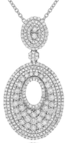 14KT WHITE GOLD LOVE FLOATING PENDANT. 3D CLASSIC MULTI ROW DOUBLE OVAL FLORAL DESIGN. ROUND DIAMONDS ARE F/G COLOR, VSSI CLARITY 1.40 CARATS. COMES ON A 14KT GOLD DIAMOND CUT 16" INCH CHAIN.
