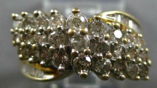 1.40CT DIAMOND 14KT 2 TONE GOLD 3D ROUND AND BAGUETTE MULTI ROW CRISS CROSS RING