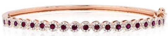 1.41CT DIAMOND & AAA RUBY 14KT ROSE GOLD 3D ROUND HALO FLOWER BANGLE BRACELET