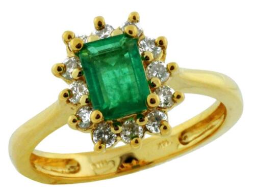 14KT YELLOW GOLD FRIENDSHIP LOVE RING. 3D FLOWER DESIGN. ROUND DIAMONDS ARE F/G COLOR, VSSI CLARITY .38 CARATS. AAA EMERALD CUT EMERALD IS 1.04 CARATS. RING SIZE 7. CAN BE SIZED BY OUR MASTER JEWELER UPON REQUEST. WRITTEN APPRAISAL AVAILABLE. COMES IN A PRESENTABLE GIFT BOX.