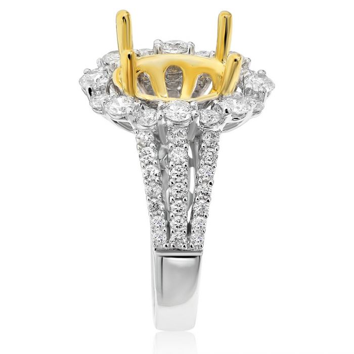 1.43CT DIAMOND 14KT TWO TONE GOLD OVAL & ROUND 3 ROW SEMI MOUNT ENGAGEMENT RING