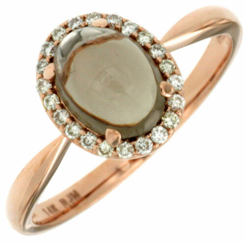 1.44CT DIAMOND & AAA CABOCHON SMOKY TOPAZ 14KT ROSE GOLD OVAL & ROUND FUN RING