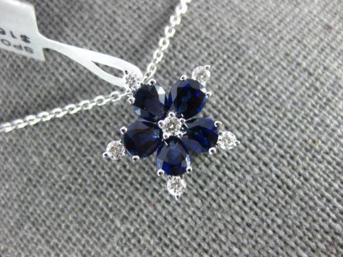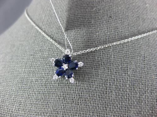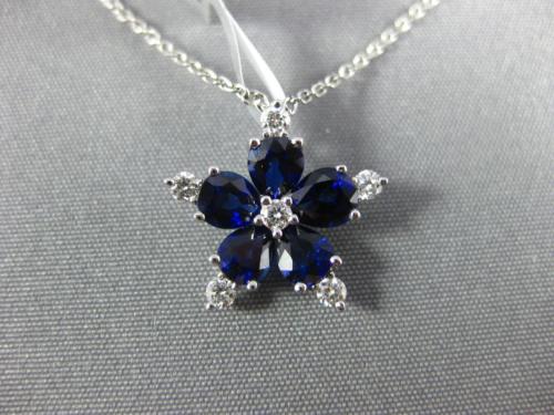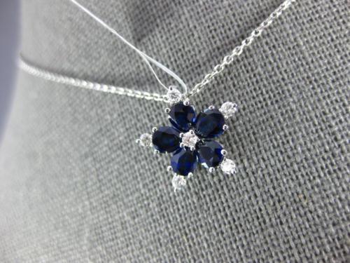 1.44CT DIAMOND & AAA SAPPHIRE 18KT WHITE GOLD 3D FLOWER SNOWFLAKE LOVE PENDANT