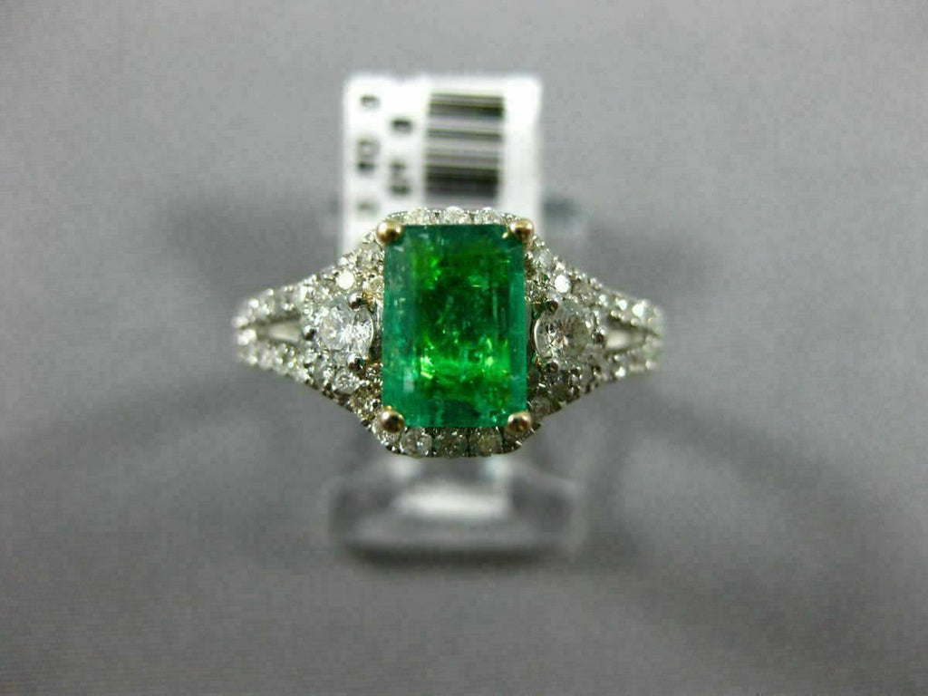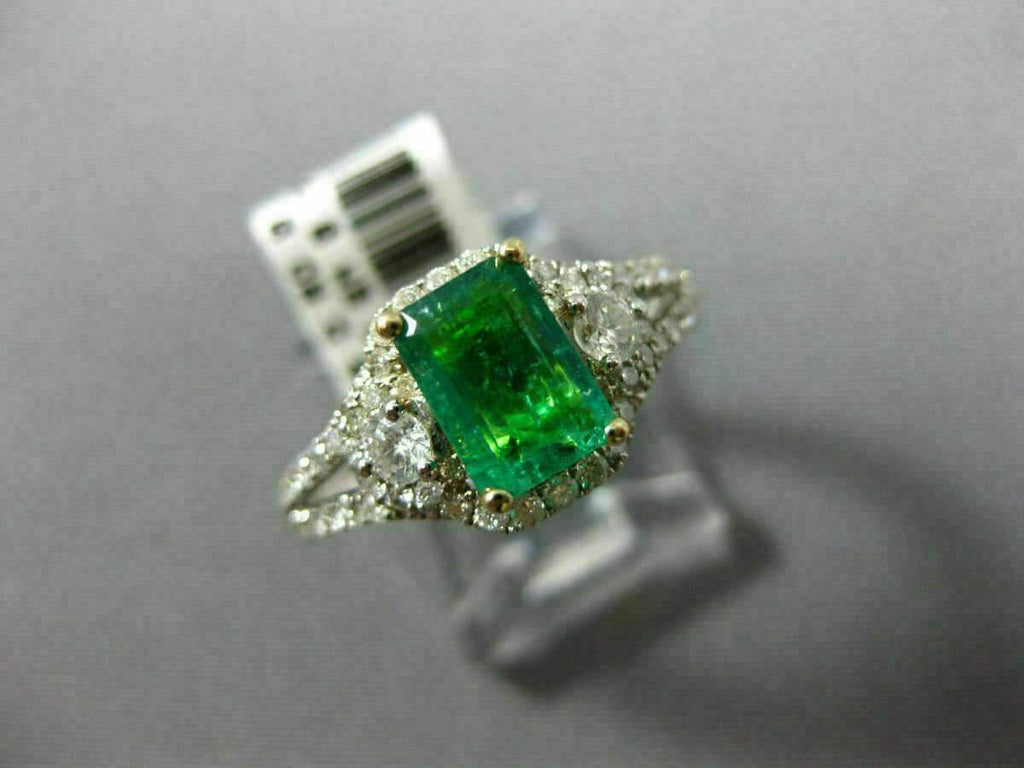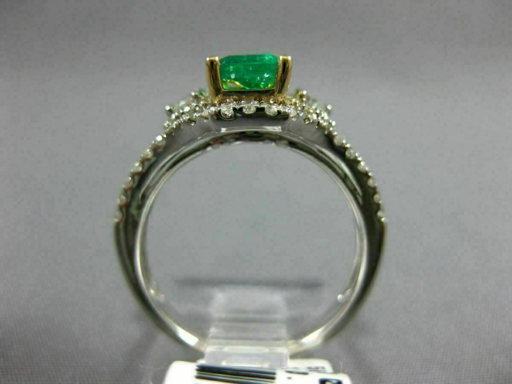 1.44CT DIAMOND & COLOMBIAN EMERALD 14KT 2 TONE GOLD 3 STONE HALO ENGAGEMENT RING