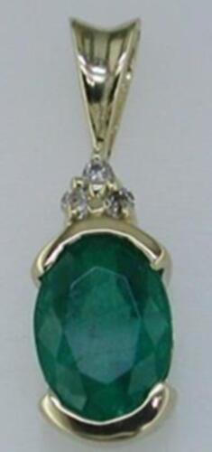 14KT YELLOW GOLD FUN FLOATING PENDANT. 3D CLASSIC SEMI BEZEL DESIGN. ROUND DIAMONDS ARE F/G COLOR, VSSI CLARITY .03 CARATS. AAA OVAL EMERALD IS 1.2 CARATS. COMES ON A 14KT GOLD DIAMOND CUT 16" INCH CHAIN. WRITTEN APPRAISAL AVAILABLE. COMES IN A PRESENTABLE GIFT BOX.