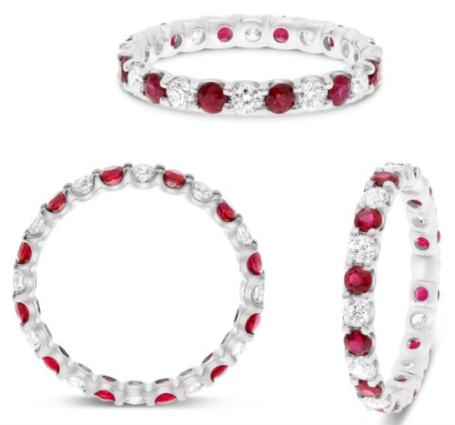 1.45CT DIAMOND & AAA RUBY 14KT WHITE GOLD 3D ROUND WEDDING BAND ANNIVERSARY RING