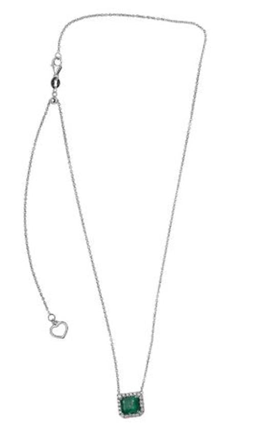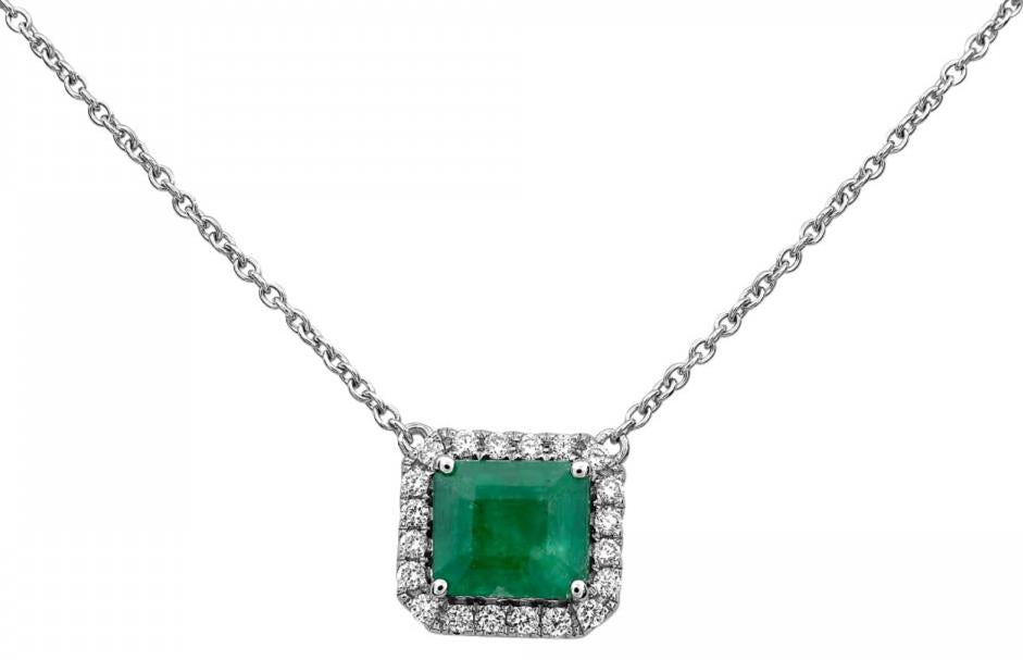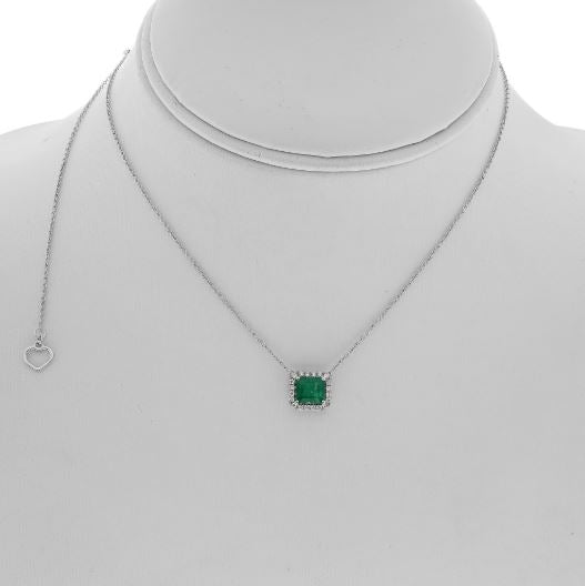 1.45CT DIAMOND & EMERALD 14KT WHITE GOLD 3D SQUARE HEXAGON HALO CLASSIC NECKLACE
