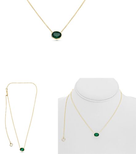 1.46CT AAA EMERALD 14KT YELLOW GOLD SOLITAIRE SQUARE OVAL OCTAGON LOVE NECKLACE