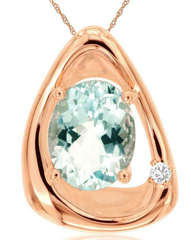14KT WHITE GOLD FUN FLOATING PENDANT. 3D CLASSIC DESIGN. ROUND DIAMONDS ARE F/G COLOR, VSSI CLARITY .02 CARATS. AAA OVAL AQUAMARINE IS 1.45 CARATS. COMES ON A 14KT GOLD DIAMOND CUT 18" INCH CHAIN. WRITTEN APPRAISAL AVAILABLE. COMES IN A PRESENTABLE GIFT BOX.
