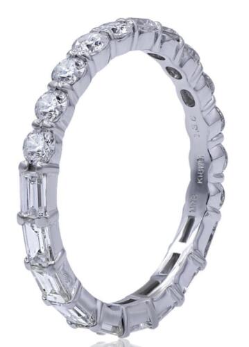 1.48CT DIAMOND 18KT WHITE GOLD 3D ROUND & EMERALD CUT ETERNITY ANNIVERSARY RING