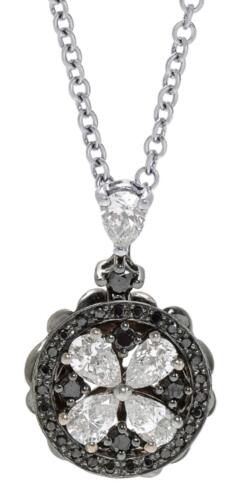 1.48CT WHITE & BLACK DIAMOND 18K WHITE GOLD PEAR SHAPE & ROUND CIRCULAR NECKLACE