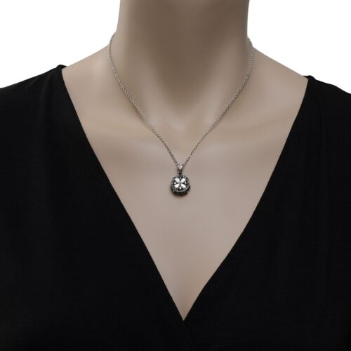18KT WHITE GOLD LOVE NECKLACE. 3D CIRCULAR FLOWER DESIGN. WHITE DIAMONDS ARE F/G COLOR, VSSI CLARITY .48 CARATS. BLACK DIAMONDS ARE 1.0 CARAT. 16" INCHES LONG. WRITTEN APPRAISAL AVAILABLE. COMES IN A PRESENTABLE GIFT BOX.