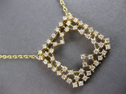 14KT YELLOW GOLD LOVE NECKLACE. 3D OPEN SQUARE DOUBLE SIDED DESIGN. DIAMONDS ARE F/G COLOR, VSSI CLARITY 1.49 CARATS. MEASURES 27mm X 26.5mm. 18.5" INCHES LONG. WRITTEN APPRAISAL AVAILABLE. COMES IN A PRESENTABLE GIFT BOX.