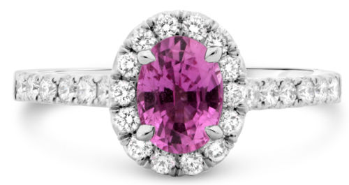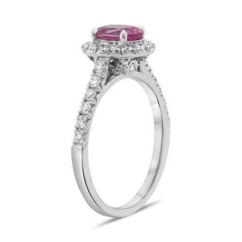 1.49CT DIAMOND & AAA PINK SAPPHIRE 18KT WHITE GOLD 3D OVAL HALO ENGAGEMENT RING