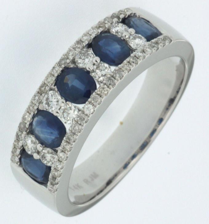 1.49CT DIAMOND & SAPPHIRE 14K WHITE GOLD ROUND & OVAL 5 STONE ANNIVERSARY RING