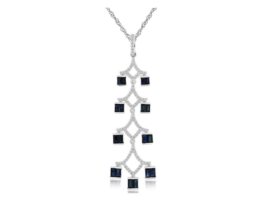 1.4CT DIAMOND & AAA SAPPHIRE 14KT WHITE GOLD ROUND & BAGUETTE CHANDELIER PENDANT