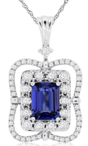1.4CT DIAMOND & AAA TANZANITE 14K WHITE GOLD ROUND & BAGUETTE FLOWER FUN PENDANT