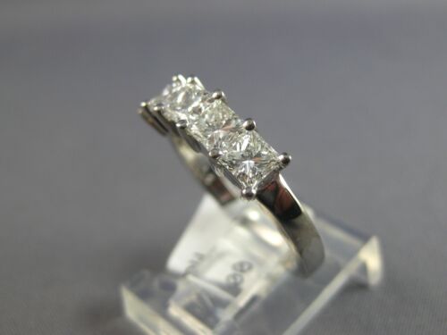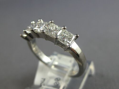 14KT WHITE GOLD WEDDING ANNIVERSARY RING. 3D CLASSIC FIVE STONE INVISIBLE SHARED PRONG DESIGN. PRINCESS CUT DIAMONDS ARE F/G COLOR, VSSI CLARITY 1.50 CARATS. MEASURES 5mm WIDE. RING SIZE 6. CAN BE SIZED BY OUR MASTER JEWELER UPON REQUEST. WRITTEN APPRAISAL AVAILABLE. COMES IN A PRESENTABLE GIFT BOX.