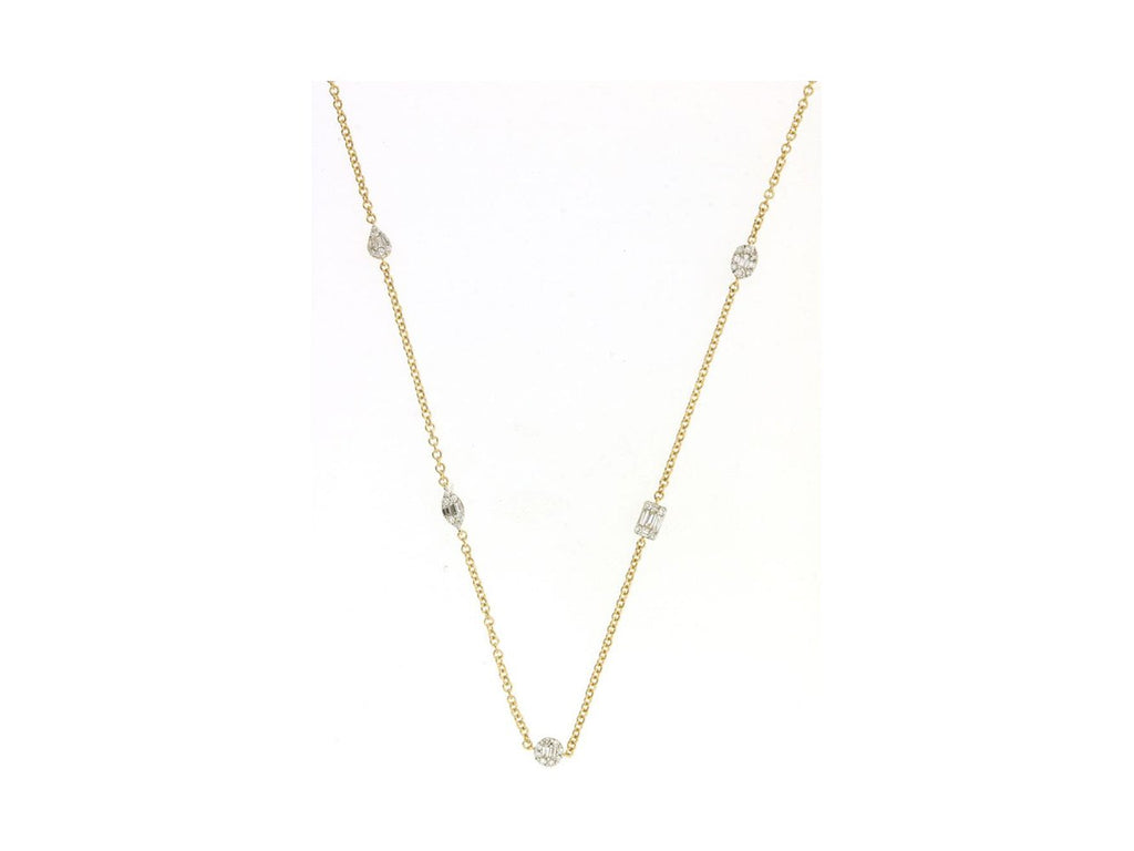 1.50CT DIAMOND 14K YELLOW GOLD ROUND & BAGUETTE MULTI SHAPE BY THE YARD NECKLACE
