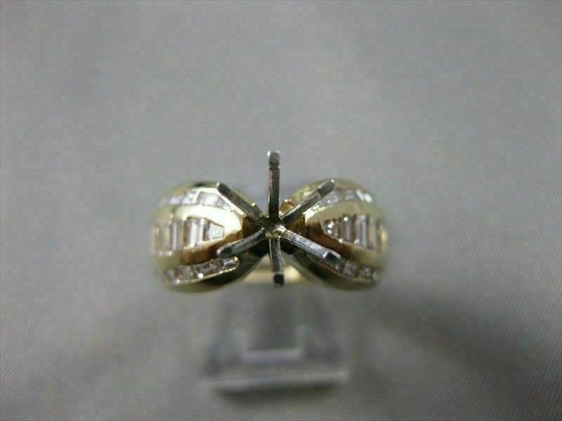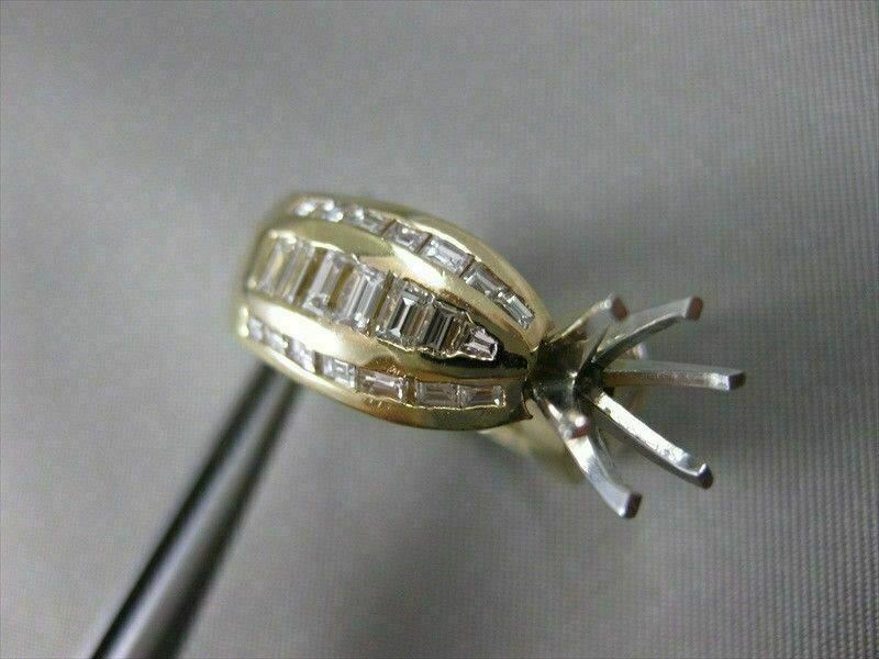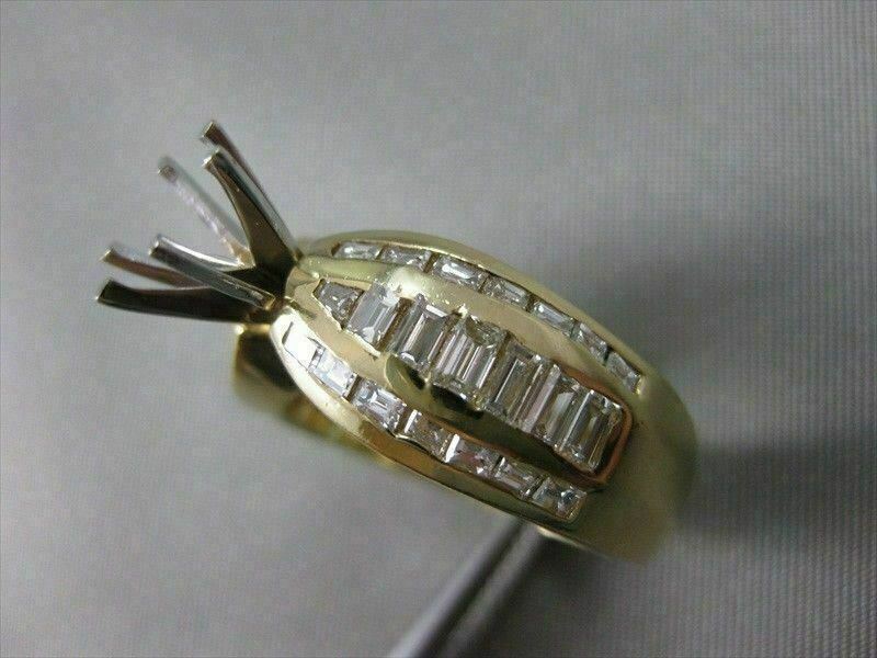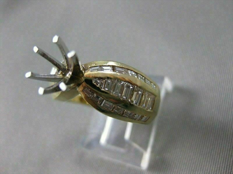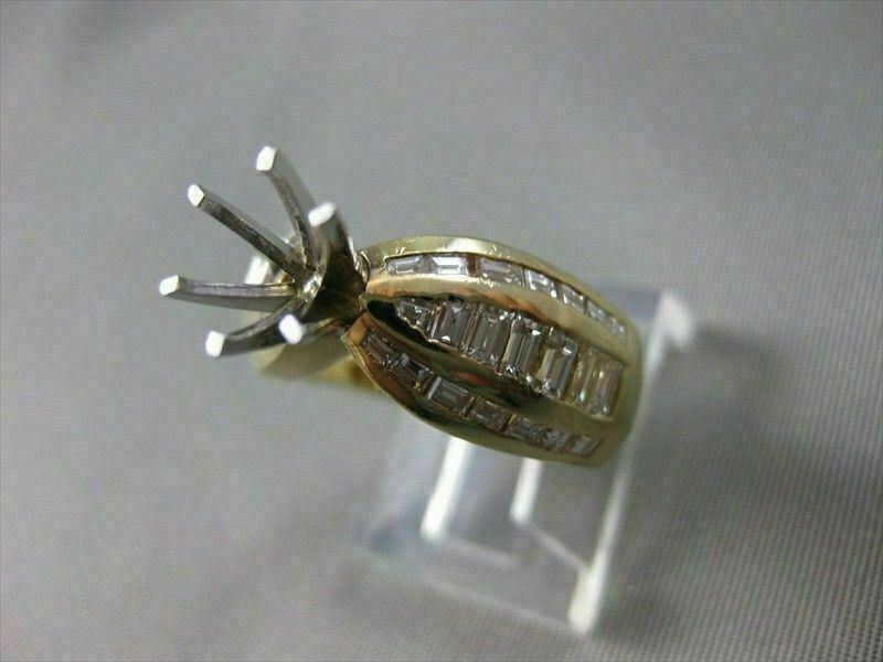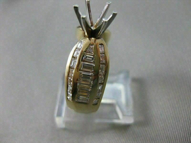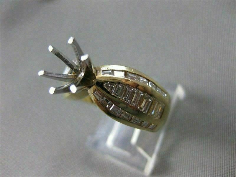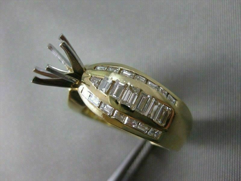 ESTATE 14K YELLOW GOLD RING SEMI MOUNT SETTING. EMERALD CUT DIAMONDS ARE F/G COLOR, VS CLARITY, 1.50 CARATS. 9MM WIDE. RING IS SIZE 6.75. CAN BE SIZED BY OUR MASTER JEWELER. CENTER SETTING CAN FIT UP TO 1.50 CARAT, 7MM ROUND GEM OR DIAMOND. SELECTION OF STONES AVAILABLE FOR PURCHASE. WRITTEN APPRAISAL AVAILABLE. COMES IN A PRESENTABLE GIFT BOX