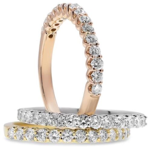 1.51CT DIAMOND 18KT TRI COLOR GOLD ROUND SHARED PRONG STACKABLE ANNIVERSARY RING