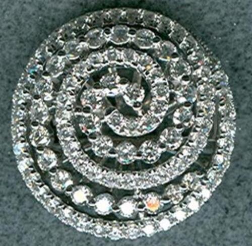 18KT WHITE GOLD FLOATING PENDANT. 3D GRADUATING SWIRL CIRCULAR DESIGN. ROUND DIAMONDS ARE F/G COLOR, VSSI CLARITY 1.51 CARATS. COMES ON A 14KT GOLD DIAMOND CUT 16" INCH CHAIN. WRITTEN APPRAISAL AVAILABLE. COMES IN A PRESENTABLE GIFT BOX.