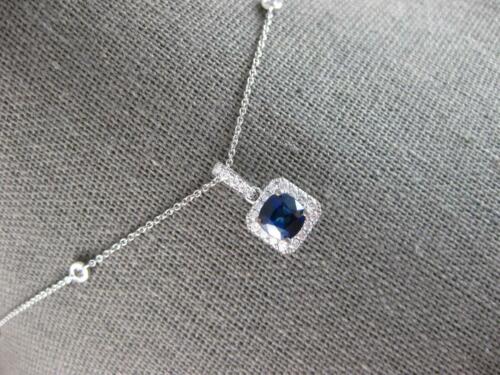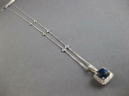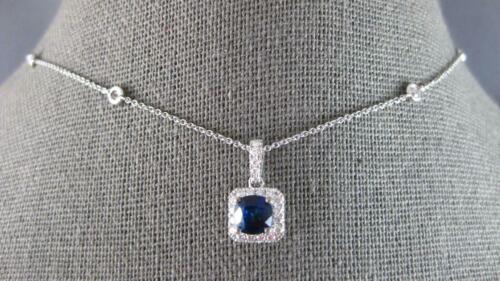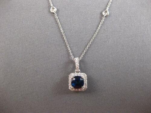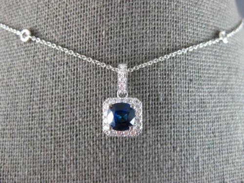 18KT WHITE GOLD LOVE PENDANT. 3D CLASSIC HALO SQUARE BY THE YARD DESIGN. ROUND DIAMONDS ARE F/G COLOR, VVS-VS CLARITY .36 CARATS. AAA CUSHION CUT SAPPHIRE IS 1.15 CARATS. SAPPHIRE MEASURES 5.5mm WIDE. PENDANT MEASURES 15mm X 8mm. COMES ON A 14KT GOLD DIAMOND CUT 18" INCH CHAIN. WRITTEN APPRAISAL AVAILABLE. COMES IN A PRESENTABLE GIFT BOX.