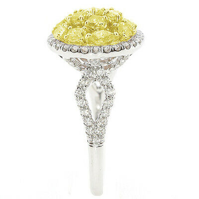 1.51CT WHITE & FANCY YELLOW DIAMOND 18KT 2 TONE GOLD CLUSTER HALO INFINITY RING