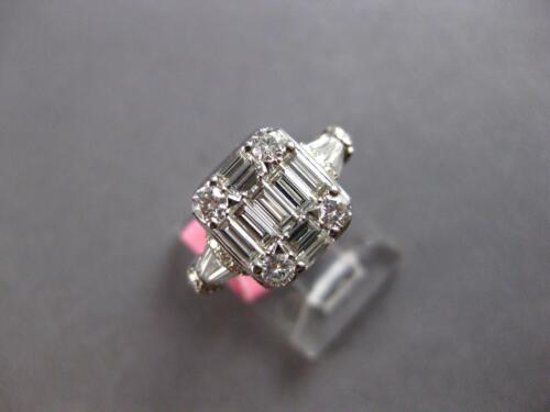 18KT WHITE GOLD FRIENDSHIP LOVE RING. 3D CLUSTER SQUARE INVISIBLE DESIGN. DIAMONDS ARE F/G COLOR, VVS-VS CLARITY. ROUND DIAMONDS ARE .47 CARATS. BAGUETTE DIAMONDS ARE 1.05 CARATS. MEASURES 10mm WIDE. RING SIZE 6.5. CAN BE SIZED BY OUR MASTER JEWELER UPON REQUEST. WRITTEN APPRAISAL AVAILABLE. COMES IN A PRESENTABLE GIFT BOX.