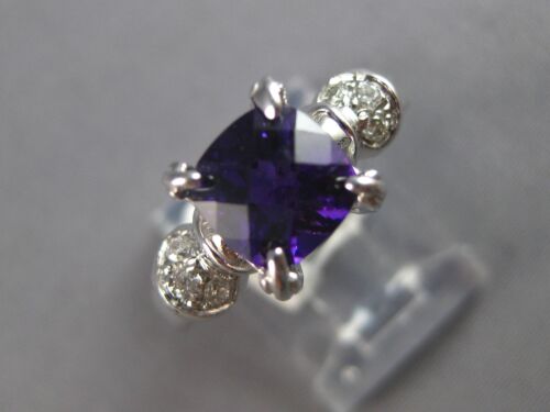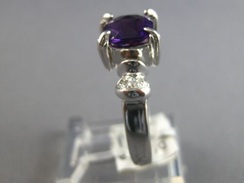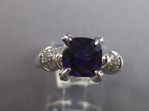 14KT WHITE GOLD ENGAGEMENT RING. 3D SQUARE DESIGN. ROUND DIAMONDS ARE F/G COLOR, VSSI CLARITY .09 CARATS. AAA EXTRA FACETED CUSHION CUT AMETHYST IS 1.43 CARATS. MEASURES 8mm WIDE. RING SIZE 7.25. CAN BE SIZED BY OUR MASTER JEWELER UPON REQUEST. WRITTEN APPRAISAL AVAILABLE. COMES IN A PRESENTABLE GIFT BOX.