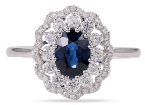 1.52CT DIAMOND & AAA SAPPHIRE 14K WHITE GOLD OVAL & ROUND FLOWER ENGAGEMENT RING
