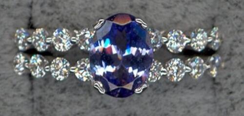 18KT WHITE GOLD ENGAGEMENT RING. 3D TWO ROW SHARED PRONG DESIGN. ROUND DIAMONDS ARE F/G COLOR, VSSI CLARITY .65 CARATS. AAA EXTRA FACETED OVAL TANZANITE IS .87 CARATS. RING SIZE 7. CAN BE SIZED BY OUR MASTER JEWELER UPON REQUEST. WRITTEN APPRAISAL AVAILABLE. COMES IN A PRESENTABLE GIFT BOX.
