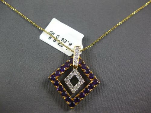 18KT YELLOW GOLD FUN FLOATING PENDANT. 3D DIAMOND SHAPE DESIGN. DIAMONDS ARE F/G COLOR, VSSI CLARITY .26 CARATS. AAA AMETHYSTS ARE 1.27 CARATS. MEASURES 28mm X 22mm. COMES ON A 14KT GOLD DIAMOND CUT 16" INCH CHAIN. WRITTEN APPRAISAL AVAILABLE. COMES IN A PRESENTABLE GIFT BOX.