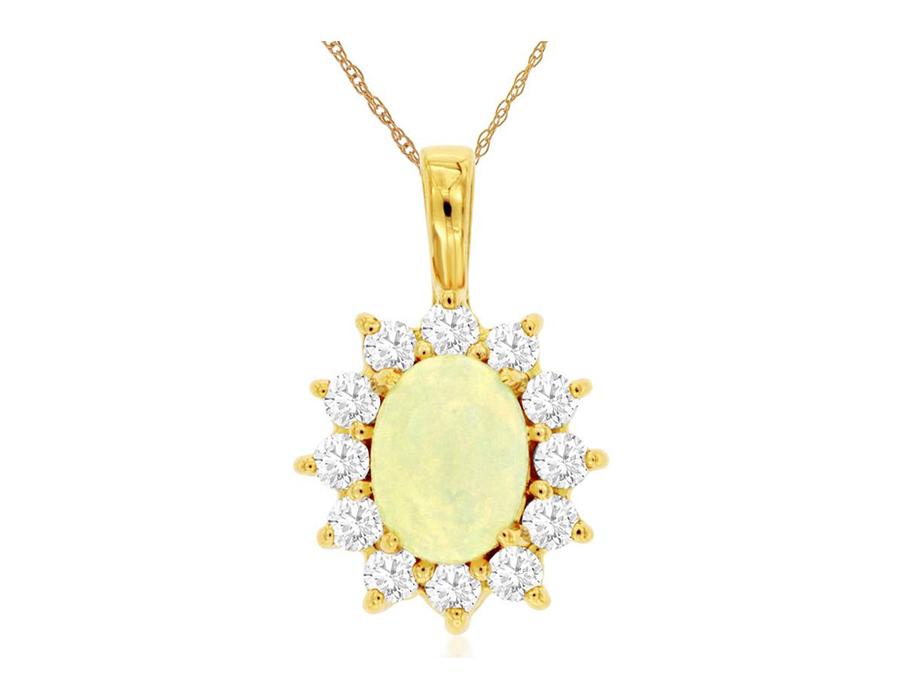 1.53CT DIAMOND & AAA OPAL 14KT YELLOW GOLD OVAL & ROUND FLOWER FLOATING PENDANT