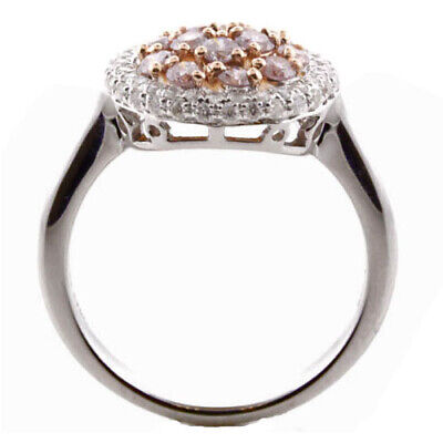 18KT WHITE AND ROSE GOLD FUN RING. 3D CLUSTER OVAL FLOWER DESIGN. DIAMONDS ARE F/G COLOR, VSSI CLARITY .32 CARATS. PINK DIAMONDS ARE 1.21 CARATS. RING SIZE 7. CAN BE SIZED BY OUR MASTER JEWELER UPON REQUEST. WRITTEN APPRAISAL AVAILABLE. COMES IN A PRESENTABLE GIFT BOX.